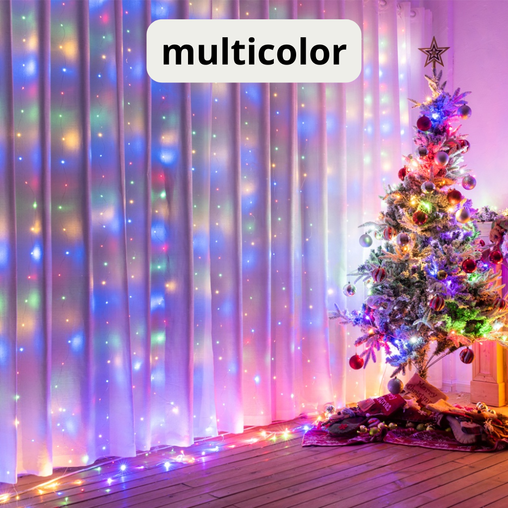 La Cortina de Luces LED con 100 bombillos y 8 modos de iluminación es ideal para decorar tanto interiores como exteriores. Perfecta para Navidad, fiestas, matrimonios, jardines y mucho más. Dale un toque mágico y acogedor a cualquier espacio. ✨